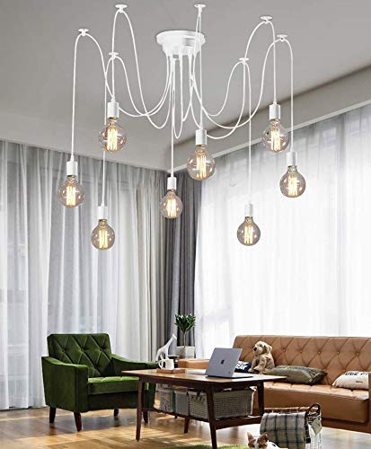 YZM Lampada a ragno regolabile moderna bianca, illuminazione industriale a soffitto Edison, lampadario E27 (8 luci)