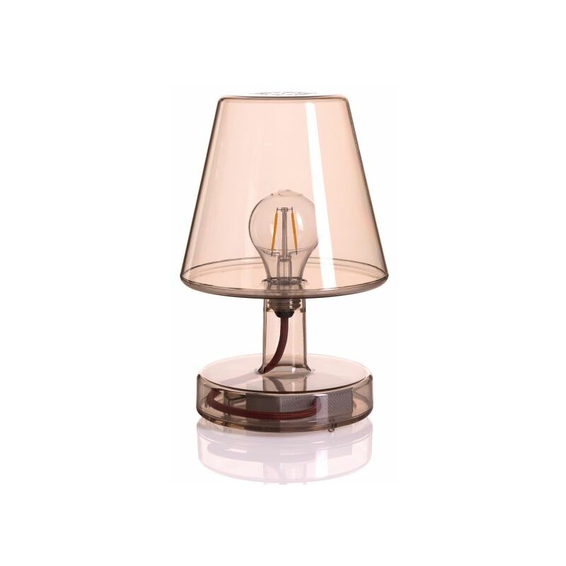 Lampada ricaricabile di Fatboy, modello Transloetje. Lampada da tavolo ricaricabile, che combina la forma tradizionale del paralume con la classica lampadina a bulbo e la tecnologia innovativa dell'illuminazione LED. Transloetje può essere un comodo abat-jour in camera oppure nell'ingresso oppure una comoda fonte di luce in giardino o terrazzo, da portare con voi per illuminare i vostri passi. La lampada Fatboy è realizzata in policarbonato trasparente, disponibile in diverse varianti cromatiche. Il filo interno è colorato, rosso nella lampada trasparente, in tinta con il policarbonato nelle lampade colorate. Il policarbonato è resistente e resistente all'acqua, il che rende la lampada perfetta anche per l'uso all'esterno. La pulizia è semplicissima: basta un panno umido oppure con acqua e sapone neutro. Specifiche tecniche Sorgente luminosa: luce LED 1 W, 48 lumen, 2700 K Accensione e spegnimento con tasto touch a sfioro sulla base Regolazione della luce a tre intensità Durata della