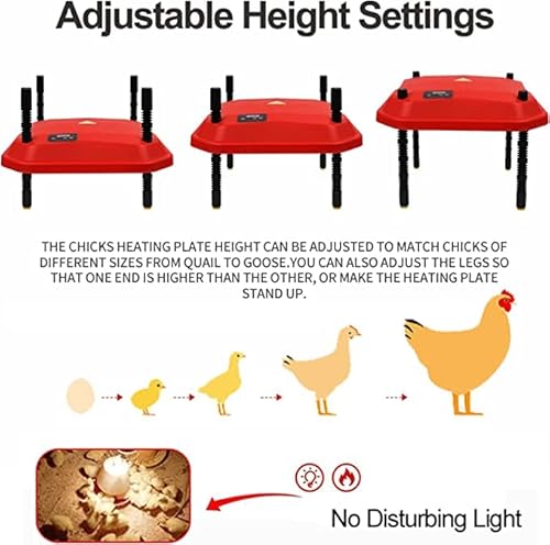 I pulcini restano al caldo dal contatto diretto con la parte inferiore riscaldata della piastra! Fa caldo al tocco umano, ma giusto per i pulcini! i tuoi pulcini otterranno un sonno migliore, miglioreranno il loro aumento di peso e la crescita delle piume.