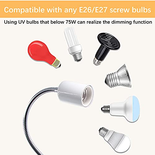 U/D Lampada a Clip Riscaldante con Clip e Cavo, Lampada Riscaldante Rettile, per Lampadine a Infrarossi e Luce Termica, Ruotabile a 360°(Senza Lampadina) (Bianca)