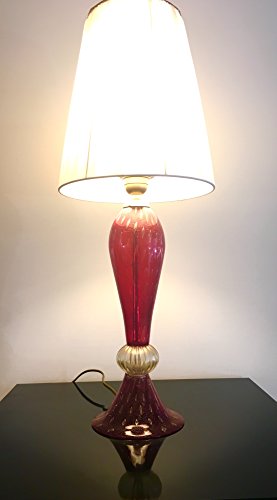 Lampada rossa in Vetro di MURANO con paralume in stofa altezza 65 cm PEZZO UNICO realizzato Artiginalmente