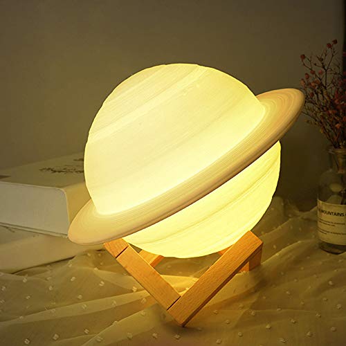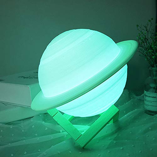 Lampada luna 3D Saturno, luce notturna ricaricabile, 16 colori LED, dimmerabile, 15 cm con supporto in legno, arredamento camera bambini per idee regalo compleanno bambino donne