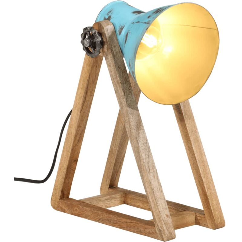 Questa lampada da scrivania mette decisamente in risalto il soggiorno, la sala da pranzo, l'ufficio, e così via. Robusto e stabile: Il legno massello di mango è un legno duro tropicale resistente, che dà vita a mobili robusti. Le belle venature del legno rendono ogni pezzo d'arredamento leggermente diverso dall'altro. Colore dipinto a mano: Siccome ogni pezzo è realizzato a mano, i colori unici variano a seconda di ciascun prodotto. Presa E27: La lampada da tavolo ha una presa E27 per una lampadina con un massimo di 25 watt. Potete scegliere e installare lampadine E27 dai vari colori di luce, creando un'atmosfera di relax e riposo. Stile industriale: Le tonalità della lampada in ferro, dotata di una finitura color blu invecchiato, si adattano perfettamente agli interni rurali o industriali. Buono a sapersi: Si tratta di una lampada in stile industriale con imperfezioni sul paralume, che dona identità alla lampada e la rende unica grazie al suo aspetto grezzo. Le lampadine non sono