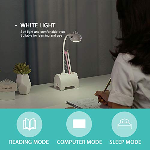 Lampada da Scrivania LED per Bambini, Lampada da Tavolo con 3 Colores e Dimmerabile, Interruttore Tattile / Connessione USB / Portapenne, Lampada da Lettura per Camerette, Studio, Lavoro (bianco)