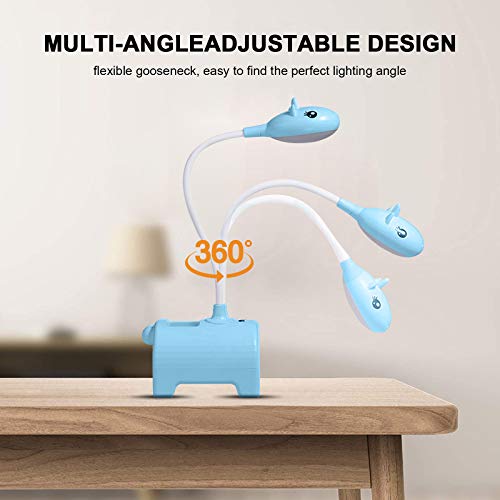 Lampada da Scrivania LED per Bambini, Lampada da Tavolo con 3 colores e Dimmerabile, Interruttore Tattile / Connessione USB / Portapenne, Lampada da Lettura per Camerette, Studio, Lavoro (blu)