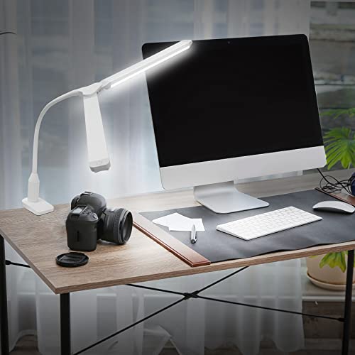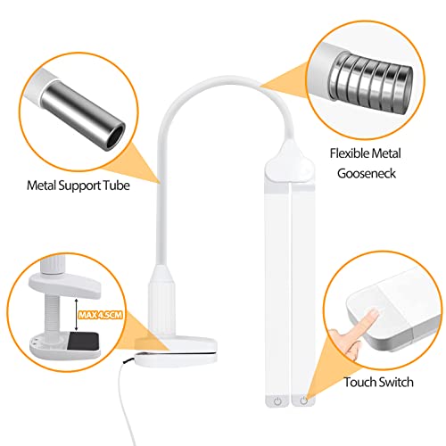Lampada da Scrivania a LED Bianca 2X 5W, Lampada da Tavolo da Lettura Dimmerabile, Lampada a Collo di Cigno Flessibile Con Spessore di Pinza Max 4.5CM, Luce Fredda 5000K per Comodino Studio Ufficio