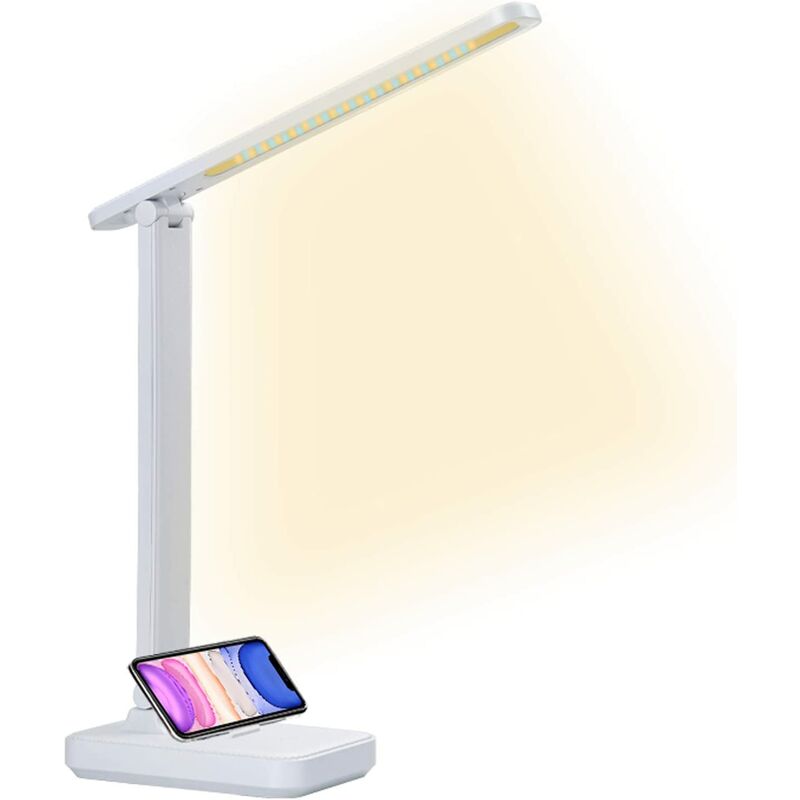 non ha sfarfallio, abbagliamento e ghosting. Può fornire una luce bianca naturale stabile e ripristinare il colore originale dell'oggetto. Una luce piacevole, anche gialla, riduce l'affaticamento degli occhi e lo stress. Nessun rischio di luce blu, per un'esperienza di luce piacevole per gli occhi Utilizzo ricaricabile e senza fili: Lampada da tavolo a LED con batteria al litio integrata da 4000 mAh, che può essere utilizzata per 4-10 ore a seconda della luminosità utilizzata. Può essere utilizzato ovunque all'interno senza cavi. Può essere utilizzato come supporto per cellulare - la parte inferiore della lampada da scrivania è dotata di componenti per supportare il telefono cellulare, che può essere utilizzato come cellulare titolare. Conveniente per video e lavoro, protegge gli occhi in condizioni di scarsa illuminazione. Pieghevole - ti consente di regolare facilmente la tua lampada da tavolo e dirigere