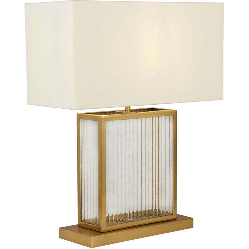 Collezione Clarendon GLAMOUR ART Lampada da tavolo sorprendente che si adatterebbe magnificamente in una casa tradizionale o più moderna. La base in ottone satinato e vetro temperato è compensata da una sfumatura di velluto bianco sporco, aggiungendo un tocco sofisticato a qualsiasi stanza.