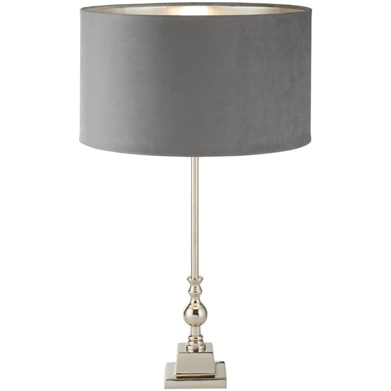 Collezione Whitby DESIGN VERSATLE La lampada da tavolo Whitby è la perfetta combinazione di stile e funzionalità. Questa splendida lampada presenta un design senza tempo che si abbina perfettamente sia agli interni tradizionali che a quelli contemporanei. Realizzata con materiali di alta qualità, la lampada presenta una finitura grigio chiaro e cromata che aggiunge un tocco di eleganza e raffinatezza a qualsiasi stanza. Il colore grigio chiaro e cromato emana calore e ricchezza, creando un punto focale accattivante nel tuo spazio. Con l'ulteriore vantaggio di un angolo di inclinazione di 6 gradi, hai la flessibilità di regolare la direzione della luce, permettendoti di creare l'atmosfera perfetta e focalizzare l'illuminazione dove ne hai più bisogno. Che tu desideri un'illuminazione da lavoro o una morbida luce atmosferica, la funzione di inclinazione di 6 gradi offre versatilità per soddisfare le tue preferenze. La lampada è dotata di un bellissimo paralume in velluto grigio chiaro