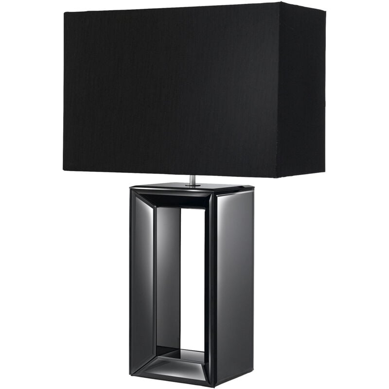 Collezione Mirror SETA ACCATTIVANTE Lampada con ampio paralume oblungo in finta seta nera e un'alta base oblunga a Mirror nero, con un centro cavo, che sembra elegante e moderno. E la luce illumina alla perfezione il paralume nero per produrre una sottile fonte di luce.