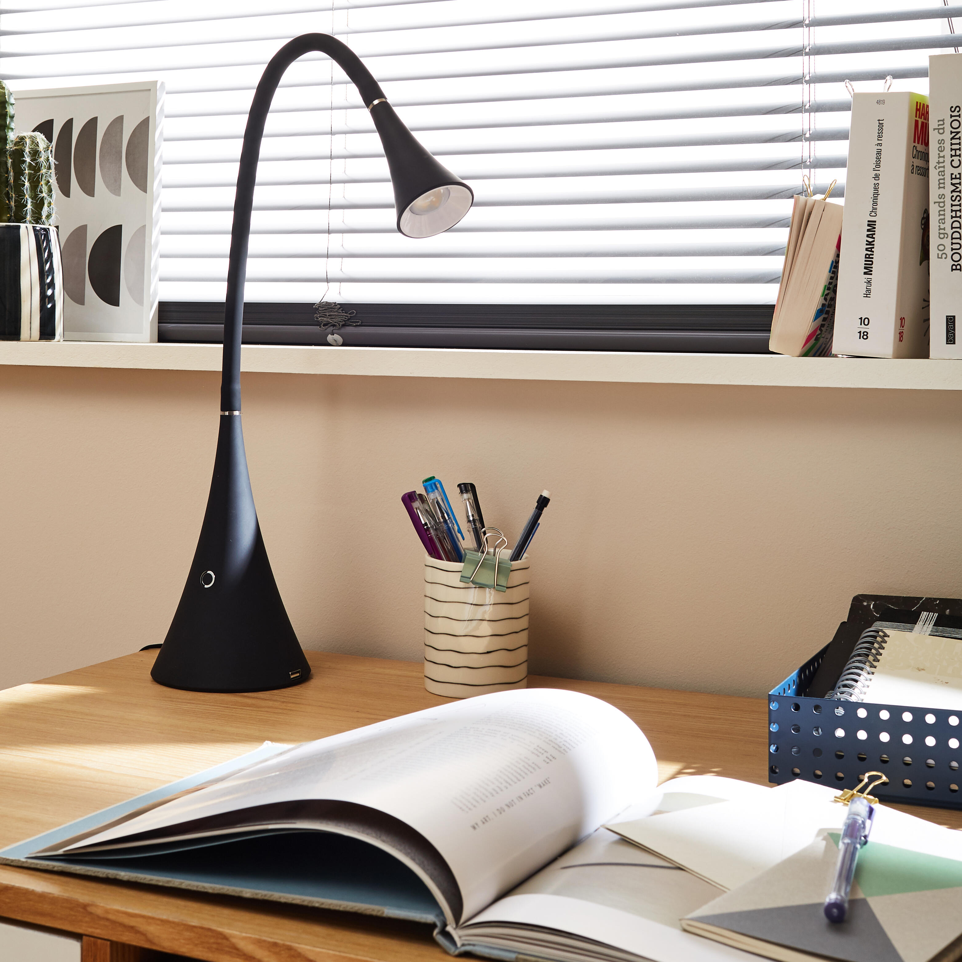 Funzione Touch integrata che permette di regolare l'intensità della luce. LED integrato, massima efficienza e minimo consumo energetico. Dimmerabile, il variatore permette di regolare l'intensità. braccio flessibile
