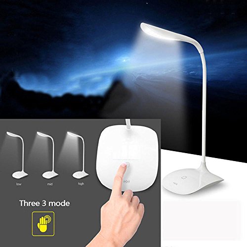 Lampada da scrivania dimmerabile, Lampada da tavolo 14LEDs Eye-Care con 3 livelli Touch Control Dimmer, Lampada a gooseneck regolabile con porta USB per studiare, leggere, lavorare, campeggio- bianca