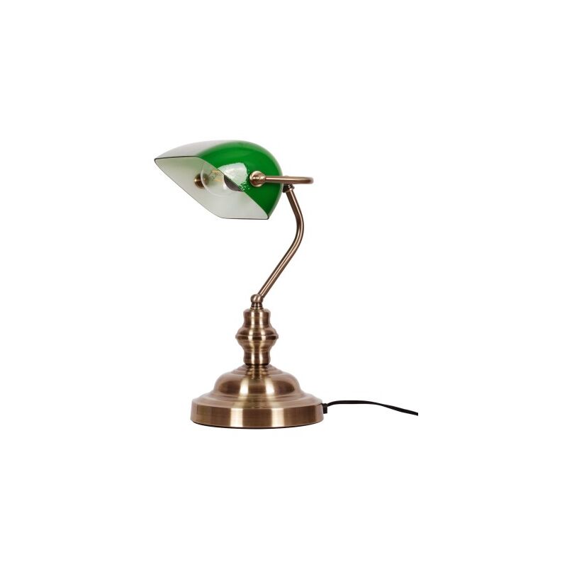 L'iconica lampada da banchiere - non solo per l'ufficio e lo studio Creata secondo l'originale dell'inizio del XX secolo - la lampada da banchiere - è una soluzione perfetta non solo per ogni gentiluomo, ma semplicemente per tutti coloro che apprezzano l'illuminazione antica ed elegante. Creata in America pensando a banchieri e finanzieri, avrebbe dovuto supportarli nel loro lavoro, e il verde del paralume in vetro avrebbe dovuto calmare e rilassare gli occhi. Oggi festeggiamo il suo ritorno negli showroom! La nostra proposta di lampada da banchiere è stata progettata come quelle del secolo scorso. La lavorazione elaborata e la combinazione di patina e verde sono una combinazione davvero chic che aggiungerà buon gusto ai tuoi interni. Un'unica fonte luminosa posizionata nella parte superiore della lampada è ricoperta da un paralume in vetro mobile, grazie al quale possiamo può regolare l'angolo del fascio luminoso. Il prodotto è dotato di attacco E27 universale, quindi puoi scegliere