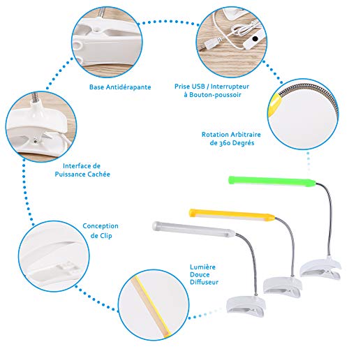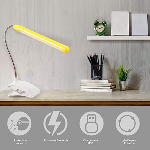 Lampada da scrivania a LED, luce LED USB, luce da lettura a LED, con clip a LED, luce per libri, comodino, scrivania, leggio, con protezione per gli occhi, per ufficio e camera da letto (giallo)