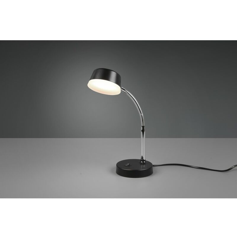 La lampada da scrivania KIKO di Trio Lighting è composta da una struttura interamente in plastica finitura nero con braccio flessibile, interruttore ON/OFF incluso. Modulo LED integrato da 4,5 watt, 300 lumen, 3000k (luce calda). Una lampada da tavolo moderna pratica e versatile, indicata sia per la casa che per l'ufficio o lo studio. Disponibile anche nella variante di finitura bianco e alluminio.