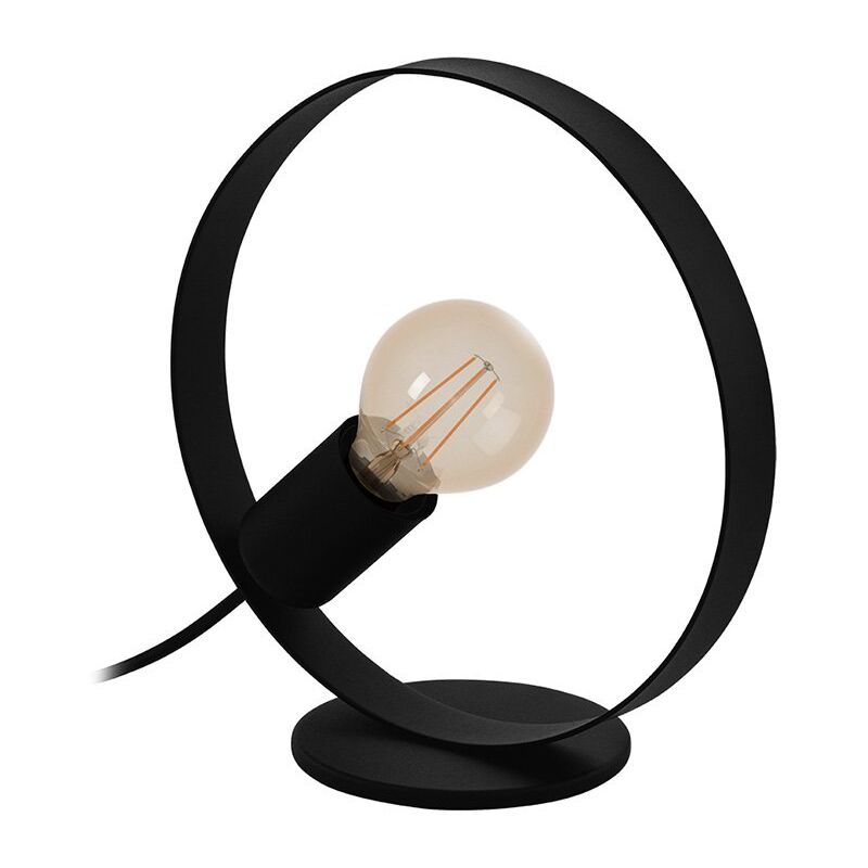 Collezione Frijolas NON SOLO UNA LAMPADA, UN'EMOZIONE DI LUCE La lampada da tavolo FRIJOLAS è composta da un anello nero in metallo corredato di una lampadina a vista.. Il supporto per lampadina, disposto in modo inclinato, crea un'immagine particolare dando al design della lampada il suo tocco finale. Questa lampada da tavolo si armonizza particolarmente con arredamenti dallo stile minimalista e può essere accesa e spenta comodamente tramite un interruttore presente sul cavo. Grazie al suo design lineare, offre un'illuminazione moderna in qualsiasi ambiente, che sia nella camera da letto, nel soggiorno, nella sala da pranzo o nel corridoio. La lampadina a filamento presente nell'immagine non è inclusa nella consegna. Per la lampada sono indicate in modo particolare lampadine dalla forma allungata con attacco E27.