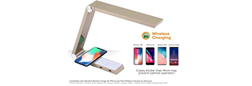 【Lampada da scrivania LED multifunzionale con caricatore wireless e 2 porte di ricarica USB funzionali】: La lampada da scrivania con caricatore wireless e 2 porte di ricarica USB, è possibile caricare 3 dispositivi e utilizzare la lampada per lavorare allo stesso tempo. (Adattatore 10V / 2A incluso).