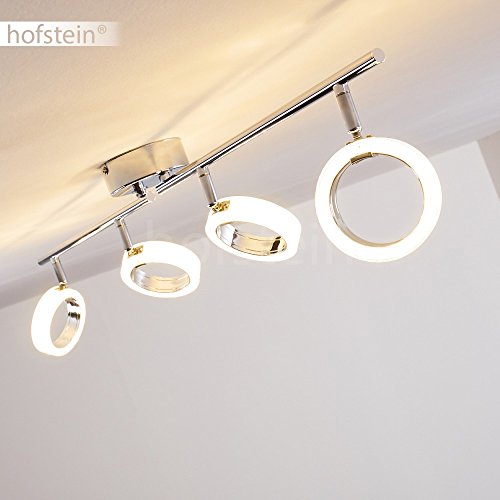 Lampada da soffitto a LED: questo faretto da soffitto a 4 luci si integra con il suo design senza tempo in ogni situazione. Un grande contrasto è dovuto al cromo lucido e ai paralumi rotondi in plastica trasparente con effetto glitter.