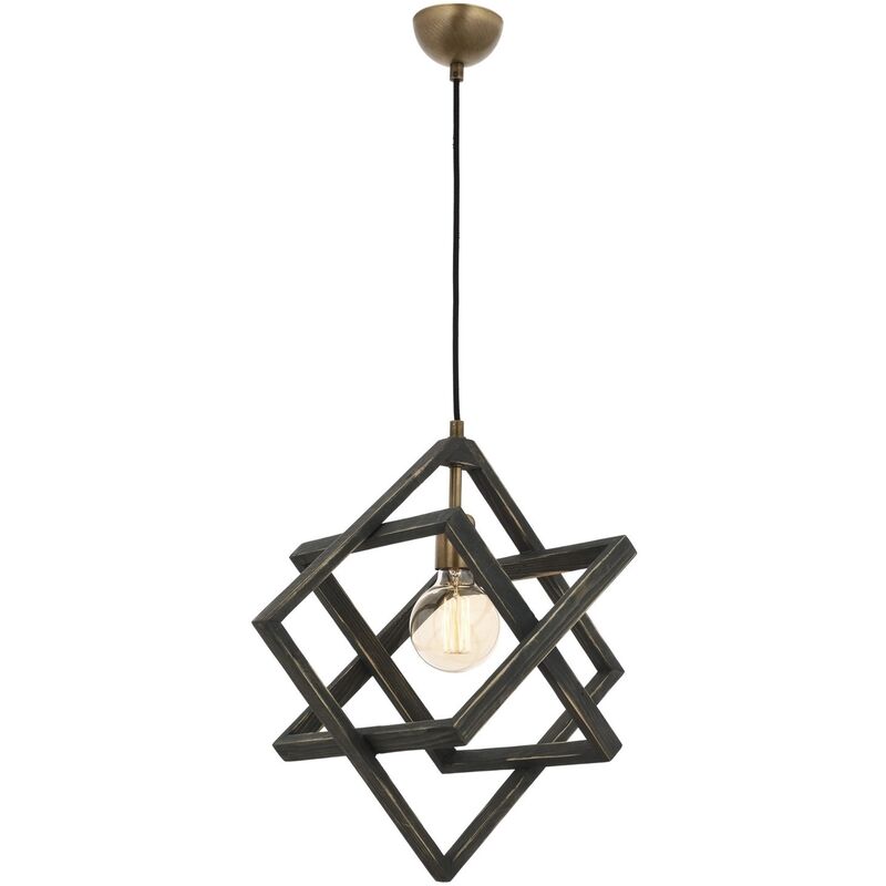 Lampada da soffitto Struttura in metallo Paralume in legno Altezza: 80 cm Diametro: 30 cm Tipo di filo: 1 x E 27 Max 60 W Colore: nero