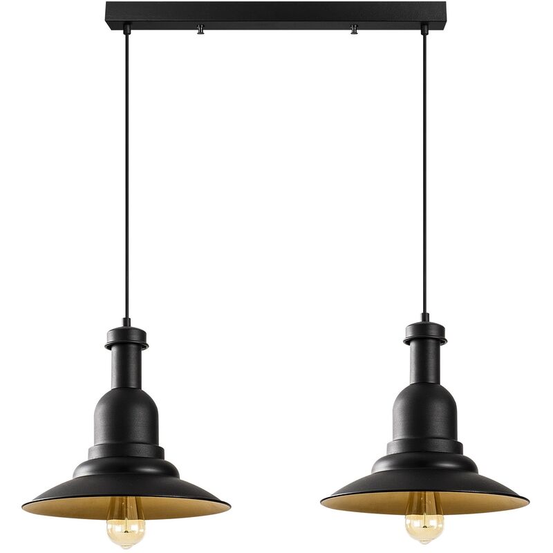 Lampada da soffitto Struttura in metallo Dimensioni: 65 x 33 cm Altezza: 130 cm Diametro del paralume: 33 cm Altezza paralume: 32 cm Altezza regolabile Dimensioni della base: 40 x 6 x 4 cm Lunghezza cavo: 90 cm Tipo di filettatura: 2 x E 27 Max 40 W Comprese le istruzioni di montaggio e il dispositivo di connessione IP20 Colore: nero Oro