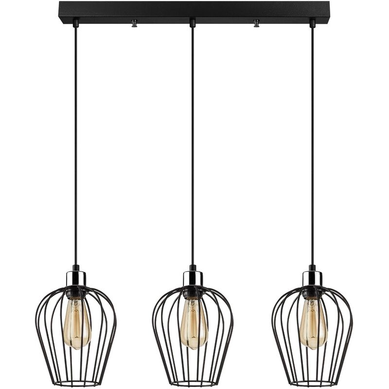 Lampada da soffitto Struttura in ferro Dimensioni: 70 x 20 cm Altezza: 115 cm Diametro del paralume: 20 cm Altezza paralume: 22 cm Altezza regolabile Dimensioni della base: 58 x 6 x 4 cm Lunghezza cavo: 90 cm Tipo di filettatura: 3 x E 27 Max 40 W Istruzioni di montaggio e dispositivo di connessione inclusi IP20 Colore: nero