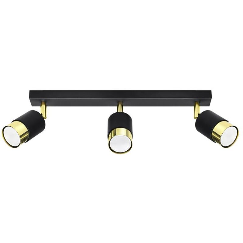 Plafond Nero 3 Black/Golden Steel 40W L: 45cm B: 5 cm H: 18 cm Dimmable Dimensioni in CM: Lunghezza: 450, larghezza: 50, altezza: 180, Peso in kg: 1.44 Lampa> No Tipo di agente luminato/versione: Gu10 Prestazioni massime in Watt: 40w Dimmbar: Sì Materiale: acciaio Colore: nero/oro Informazioni aggiuntive