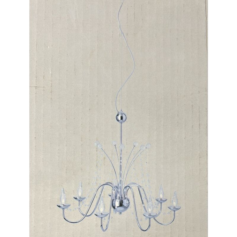Presa / Watt / Potenza: G4 / 7x max. 20 watt Colore chiaro: 2800 K / bianco caldo Classe di protezione: IP20 Tensione di esercizio: trasformatore 230/12 volt Materiale: metallo / vetro Colore: cromato / trasparente Lunghezza pendolo: circa 145 cm Diametro: 65 cm La lampada viene venduta con una lampadina della classe energetica: C Classe di efficienza energetica su una scala da A ++ (molto efficiente) a E (meno efficiente).