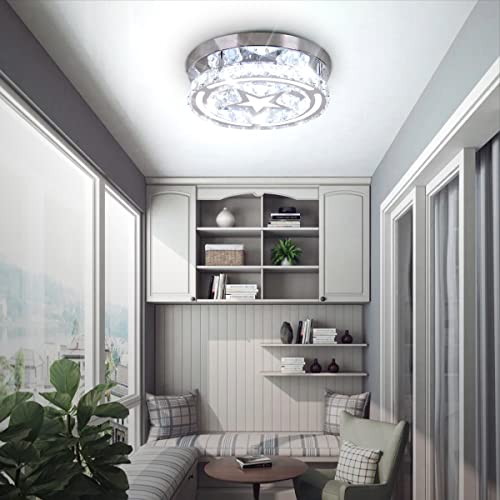 Lampada da soffitto in cristallo, moderno lampadario di cristallo di lusso Illuminazione Bianco Freddo LED Flush Mount Lampada a sospensione per camera da letto Corridoio Bar Cucina Bagno Bambini