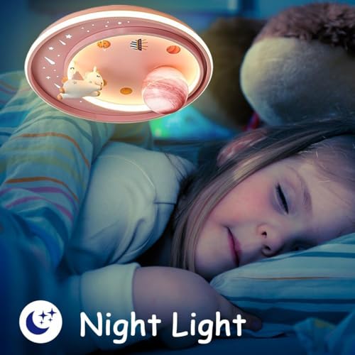 KZT LED Lampada da Soffitto Dimmerabile Plafoniera con Telecomando Bambini Cartone Creativo Plafoniere Moderna Rosa Rotondo Luce da Soffitto per Ragazzo Ragazza Camera da Letto Illuminazione