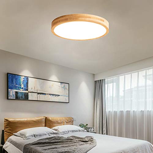 VOMI Lampada da Soffitto Dimmerabile con Telecomando, 24W Plafoniera LED Soffitto Legno Moderna Rotonda Lampada in Legno, Plafoniere da Soffitto per Camera da Letto Soggiorno Ufficio Corridoio