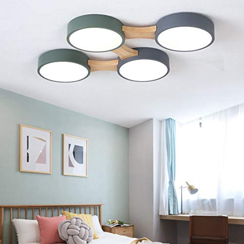 N /A Lampada da Soffitto a LED in Ferro e Legno Moderna Plafoniera Rotonda Minimalista, Lampada da Camera in Stile Giapponese, per Soggiorno Camera da Letto Cucina Corridoio Studio (4 fari anteriori)