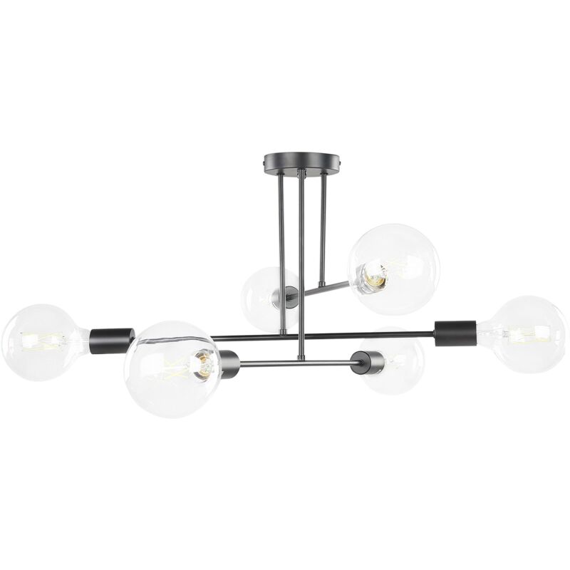 Moderna lampada a sospensione a 6 punti luce. Dona luce nuova al salone o alla camera da letto con quest'originale lampadario. Fusione perfetta tra design moderno e stile industriale si adatta a qualsiasi stanza della casa. Grazie alla sua finitura in metallo opaco, e ai suoi 6 punti luce, illumina con gusto e decora con classe. Dettagli: Tipo di prodotto: Plafoniera Stile: Moderno Colore principale: Nero Tipo di materiale: Metallo Materiale principale: Metallo Potenza elettrica: 40W Finitura: Opaca Codice IP di protezione: IP 20 Lampadine richieste: 6 Voltaggio: 220-240 V (50 Hz) Dimensioni: Profondità: 61 cm Larghezza: 61 cm Altezza: 33 cm Peso: 1 kg L'offerta include: 1 x Lampadario, Non include: Lampadine Caratteristiche chiave: Ideale come luce ambiente, Design moderno, Aggiunge un tocco di stile a ogni stanza, Materiali di altissima qualità, Risparmio energetico ottimizzato, Non richiede una manutenzione regolare Guida al montaggio: Richiede installazione. 5-15 min. Informazioni
