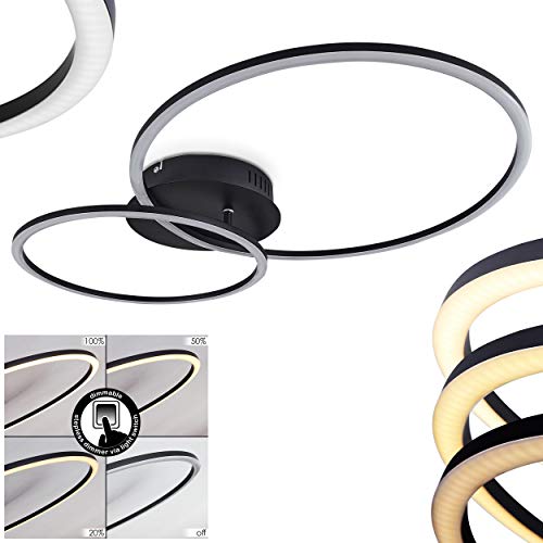 Lampada da soffitto a LED Johsa, moderna lampada da soffitto in metallo, colore nero, con 2 anelli (1 regolabile), 2 luci, 26 Watt, 3120 lumen, 3000 Kelvin, dimmerabile tramite interruttore della luce