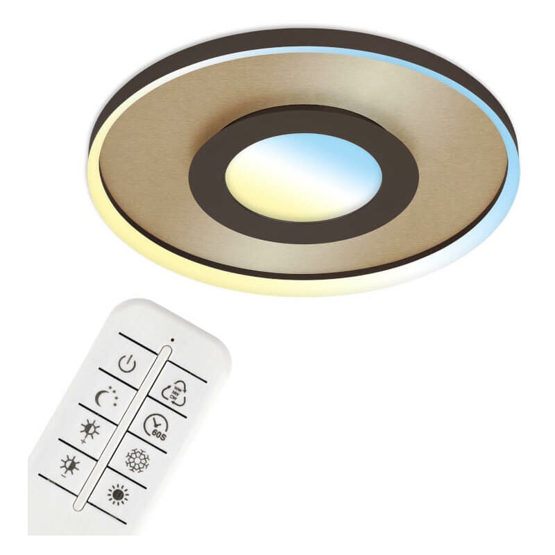 Lampada a soffitto LED CCT, Ø 49,5 cm, 25 W, 3000 LM, marrone oro La Lampada a soffitto LED CCT è un'elegante soluzione per l'illuminazione della tua casa. Con un diametro di 49,5 cm, questa lampada a soffitto offre una luce brillante e regolabile, perfetta per creare l'atmosfera desiderata in ogni ambiente. Caratteristiche: Potenza: 25 W Lumen: 3000 LM Colore: marrone oro Con la sua tecnologia LED CCT, puoi regolare la temperatura del colore della luce per adattarla alle tue esigenze. Che tu voglia una luce calda e accogliente o una luce più fredda e luminosa, questa lampada a soffitto ti offre la flessibilità di scegliere. Realizzata con materiali di alta qualità, questa lampada a soffitto LED CCT è resistente e durevole nel tempo. Grazie al suo design moderno e sofisticato, si adatta perfettamente a qualsiasi stile di arredamento. Aggiungi un tocco di eleganza e luminosità alla tua casa con la Lampada a soffitto LED CCT. Scegli la qualità e l'efficienza energetica di questa lampada