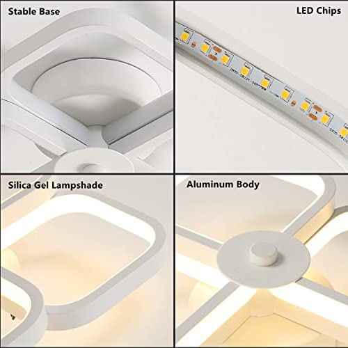 [Plafoniera moderna a LED]: La plafoniera a LED adotta un design moderno e una forma semplice. Le quattro luci ad anello quadrate sono disposte in due gruppi incrociati in due strati, che ha una grande sensazione estetica tridimensionale.