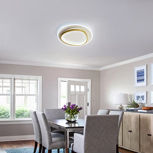 Lampada da Soffitto Moderna a LED, 46W Plafoniera per Camera da Letto Dimmerabile con Telecomando, 2700K-6500K Illuminazione a Soffitto Rotonda Bianca Oro per Soggiorno, Sala Studio, Cucina