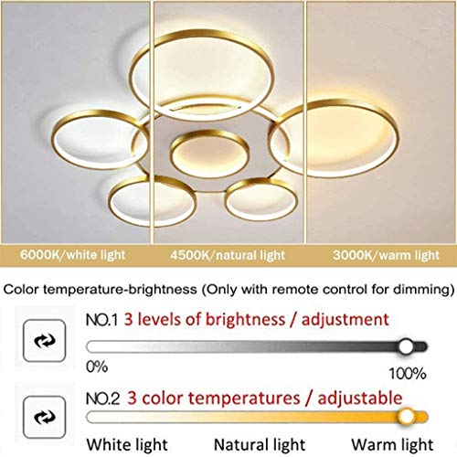 Lampada Da Soffitto LED Moderna Plafoniera Rotonda Dimmerabile Metallo Lampadario Anello Creativo Soggiorno Camera Da Letto Illuminazione,Luce/Luminosità Regolabile,D'oro,6 Rings/Ø85CM/74W