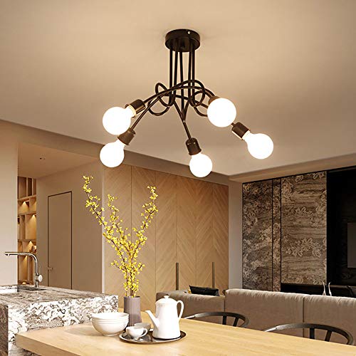 Lampada da Soffitto Moderna Lampada a Sospensione Industriale Vintage Plafoniere Creativa Regolabile Lampadario a 5 Teste Illuminazione Soggiorno Cucina Sala da pranzo Ufficio (Nero)