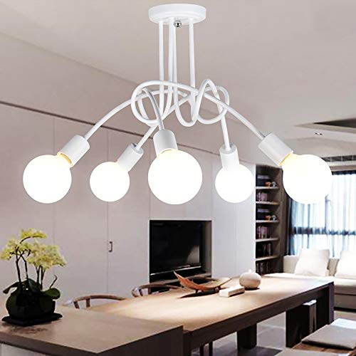 Lampada da Soffitto Moderna Lampada a Sospensione Industriale Vintage Plafoniere Creativa Regolabile Lampadario a 5 Teste Illuminazione Soggiorno Cucina Sala da pranzo Ufficio (Bianco)