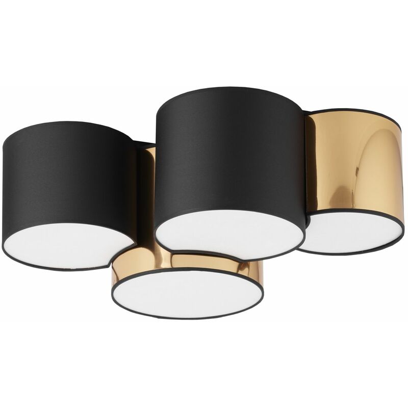 Dettagli del prodotto Materiale: Metallo, tessuto, plastica Dimensioni: larghezza: 500 mm, altezza: 300 mm, lunghezza: 690 mm Attacco: 4x E27 fino a. 15 W (nur für LED geeignet) Classe di protezione dagli spruzzi: IP20 Colore: Nero, Oro Peso: 2050 grammo