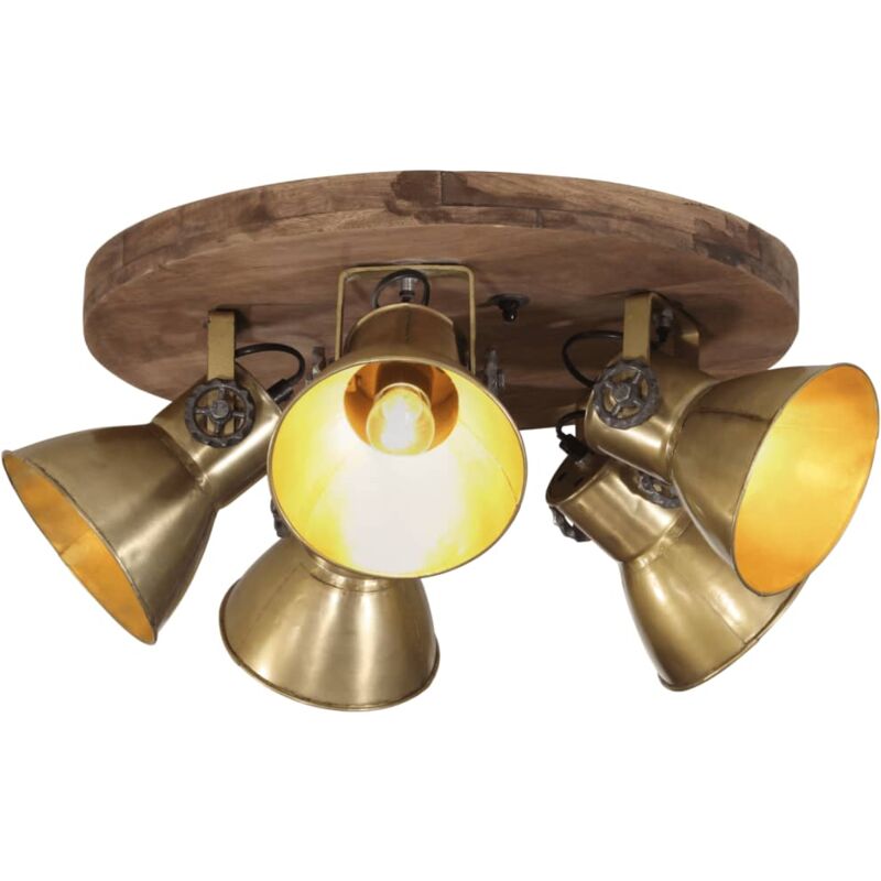 Questa lampada a soffitto mette decisamente in risalto il soggiorno, la sala da pranzo, l'ufficio, e così via. Robusto e stabile: Il legno massello di mango è un legno duro tropicale resistente, che dà vita a mobili robusti. Le belle venature del legno rendono ogni pezzo d'arredamento leggermente diverso dall'altro. Colore dipinto a mano: Siccome ogni pezzo è realizzato a mano, i colori unici variano a seconda di ciascun prodotto. Design con 5 paralumi: La lampada da soffitto, con 5 paralumi, è dotata di cinque prese E27 per lampadine con un massimo di 25 watt. Potete scegliere e installare delle lampadine E27 dai vari colori di luce, per creare un'atmosfera di relax e riposo. Stile industriale: Le tonalità della lampada in ferro, dotata di una finitura color ottone, si adattano perfettamente agli interni rurali o industriali. Buono a sapersi: Si tratta di una lampada in stile industriale con imperfezioni sul paralume, che dona identità alla lampada e la rende unica grazie al suo