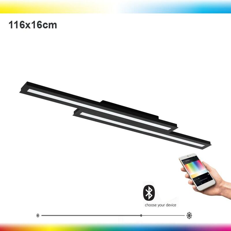 LAMPAGGIO PANNELLO LED LAMPAGGIO CARCHLINK SALITERAS-C NERO L: 116 cm B: 16 cm H: 5 cm Dimmabile 2700-6500K con funzione Connect Pannello a LED domestico intelligente con app e telecomando (escl.) Dimmabile, colori chiari regolabili: bianco caldo, bianco neutro, bianco freddo e colorato (RGB) Funzioni di app: timer, luce notturna, crepuscolo e simulazione della presenza e molto altro. /ul> Il sistema di luminaire di Eglo Crosslink è compatibile al 100% con il sistema Eglo Connect e ti consente di controllare e programmare la luce nella tua casa individualmente. Basta connettersi tramite il telecomando Connect o l'app di controllo intelligente gratuito di Awox con le luci e controllarle singolarmente o in gruppo. Scegli tra uno spettro impressionante di 16 milioni di colori e 50.000 toni bianchi, la luminosità è gradualmente diminuita e crea il tuo ambiente perfetto per ogni momento! Vantaggi: Installazione rapida e facile: le lampade possono essere controllate direttamente con eglo