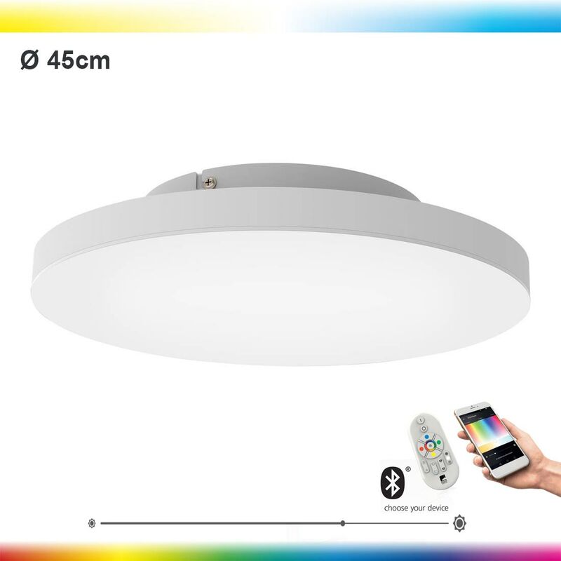 Lampada del soffitto del pannello a LED CrossLink Turcona-C Weiss H: 6cm Ø: 45 cm Dimmabile 2700-6500k con funzione Connect Lampada a soffitto a LED a LED SMART con app e telecomando controllabile (incl.) Dimmabile, colori chiari regolabili: bianco caldo, bianco neutro, bianco freddo e colorato (RGB) Funzioni di app: timer, luce notturna, crepuscolo e simulazione della presenza e molto altro. Il sistema luminaire eglo Crosslink è compatibile al 100% con il sistema Eglo Connect e ti consente di controllare la luce nella tua casa individualmente e programma. Basta connettersi tramite il telecomando Connect o l'app di controllo intelligente gratuito di Awox con le luci e controllarle singolarmente o in gruppo. Scegli tra uno spettro impressionante di 16 milioni di colori e 50.000 toni bianchi, la luminosità viene gradualmente attenuata e crea il tuo ambiente perfetto per ogni momento! Vantaggi: Installazione rapida e facile: le lampade possono essere controllate direttamente con eglo