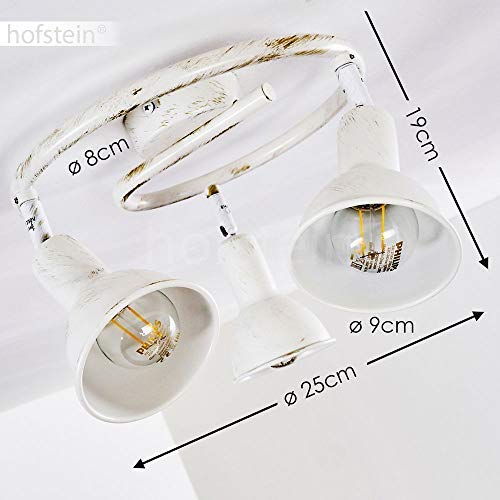 Lampada da soffitto Polmak, lampada da soffitto rotonda in metallo in bianco/oro, 3 luci, rondel con faretti regolabili, 3 x attacco E14, faretto da soffitto in design retro/vintage, senza lampadina/e