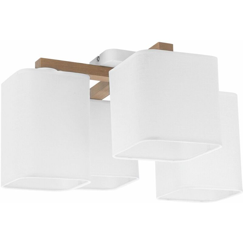 Dettagli del prodotto Materiale: Metallo, tessuto, legno Dimensioni: larghezza: 470 mm, altezza: 230 mm, lunghezza: 470 mm Attacco: 4x E27 fino a. 60 Watt Classe di protezione dagli spruzzi: IP20 Colore: Bianco, legno spazzolato Peso: 1900 grammo Descrizione del prodotto Comoda lampada da soffitto con paralume in tessuto bianco, la luce è diffusa in modo antiriflesso e garantisce una piacevole illuminazione: perfetta in soggiorno e camera da letto, con elemento decorativo in legno per un look naturale Colore senza tempo: moderno e facile da abbinare, qualità Made in EU