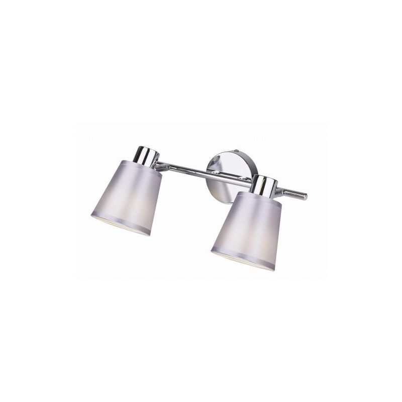 possibilità di regolare l'angolazione del paralume. Materiale: base in acciaio, paralume in tessuto/PVC Colore base: cromo Altezza: 16 Larghezza: 36 Profondità: 16 Dimensioni (altezza/larghezza/profondità): 16x36x16 Peso (netto): 0,46 LED integrato: No Numero sorgenti luminose: 2 Sorgente luminosa incluso: No Numero di sorgenti x presa: 2xE14