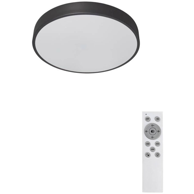 Consigliamo la plafoniera rotonda Tesia a chi desidera avere nel proprio salotto o camera da letto moderno una lampada intelligente dal look semplice e pulito, ma che allo stesso tempo offra tante funzioni aggiuntive. Nel modello Tesia la struttura in metallo nero opaco è completata da un paralume in plastica bianca. La lampada contiene una sorgente luminosa LED integrata con una potenza di 60W, un flusso luminoso di 5000 lumen e una temperatura di colore liberamente regolabile nell'intervallo 3000-6000K tramite interruttore a parete o telecomando. La durata impressionante della lampadina arriva fino a 50.000 ore! La lampada Tesia ha la possibilità di dimmerazione, ovvero la sua luminosità può essere modificata liberamente utilizzando il telecomando. Inoltre la lampada dispone di una funzione di memoria, di un timer e di una funzione di illuminazione notturna. Il diametro di questa plafoniera estremamente sottile è di 600 mm, la distanza dal soffitto è di soli 50 mm Stile di