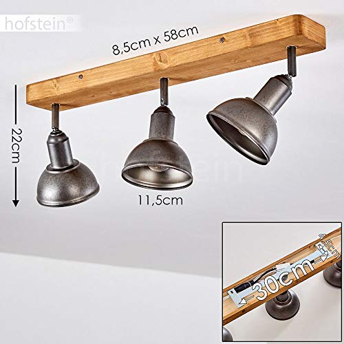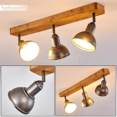 Lampada a soffitto Tholen, lampada a soffitto in metallo/legno in grigio/marrone, a 3 luci, con faretti regolabili, 3 x attacco E14, faretto in design retro/vintage, senza lampadina/e