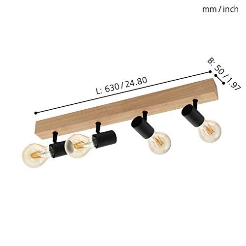 EGLO Lampada da soffitto Townshend 3, plafoniera vintage a quattro punti luce, dal design industrial, lampada retrò in acciaio e legno, nero, marrone, E27