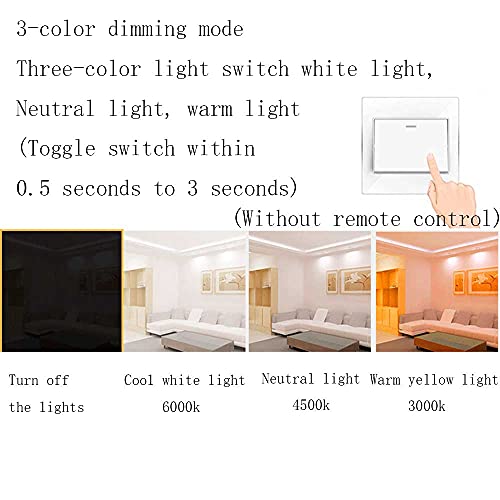 [Luce a tre toni] Plafoniera moderna e semplice a risparmio energetico, tre colori di luce possono essere commutati liberamente e gli interruttori ordinari possono essere controllati per creare diverse atmosfere domestiche, luce calda -3000K, luce naturale -4500K, luce bianca -6000K . Il design alla moda può adattarsi a diversi stili di decorazione.